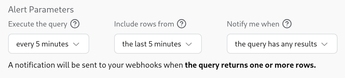 - Notify me when: the query has any results
